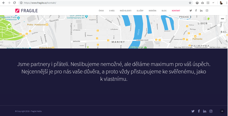 Stránka O nás a Kontakty
